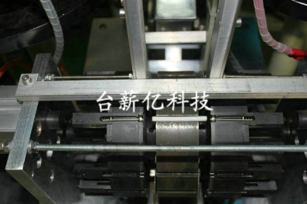 采用三個(gè)振動(dòng)送料盤分開送料,由光眼控制監(jiān)測(cè)材料供應(yīng),滿料時(shí)停機(jī),缺料時(shí)自動(dòng)開啟供料。